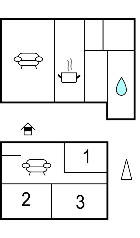 Mieszkanie znajduje się na dwóch piętrach w domu z drugim lokum i oferuje komfortową przestrzeń dla rodziny. Przytulne wnętrza sprzyjają relaksowi, a niewielki ogród z grillem i meblami ogrodowymi zachęca do spędzania wieczorów na świeżym powietrzu. Kilka kroków dalej ścieżka prowadzi w dół do wybrzeża i kamienisto-piaszczystej plaży.