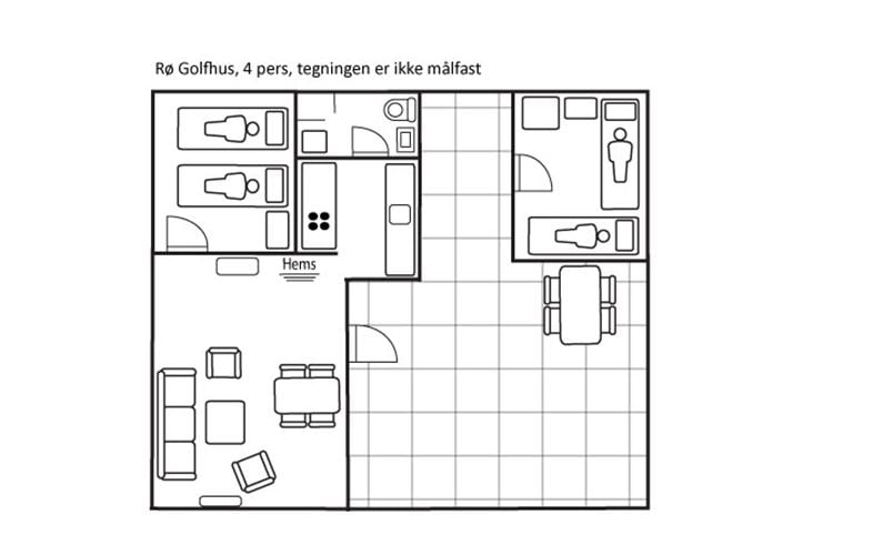 Domki Rø Golfhuse oferują zakwaterowanie dla 2–6 osób i zapewniają komfortową bazę wypadową do pieszych wędrówek, wycieczek rowerowych, dni na plaży czy rundy golfa. Układ domku obejmuje wejście z tarasu do przestronnego salonu z jadalnią, połączonego z dobrze wyposażoną kuchnią. Z kuchni prowadzi wejście do łazienki z ogrzewaniem podłogowym, prysznicem i toaletą. Z salonu można wejść na antresolę z dwoma miejscami do spania (przeznaczoną głównie dla dzieci) lub do oddzielnej sypialni z dwoma łóżkami pojedynczymi, które można połączyć w łóżko podwójne. Na tarasie znajduje się również przytulny aneks z dwoma pojedynczymi łóżkami, idealny dla dodatkowych gości.